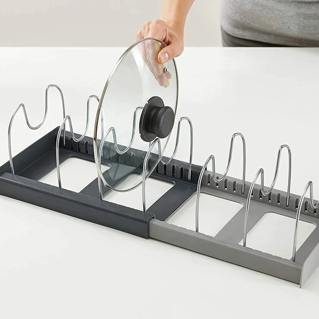 The lid rack is suitable for cabinet drawers, sink racks, and pot supports. The lid rack is used for pot lid storage.