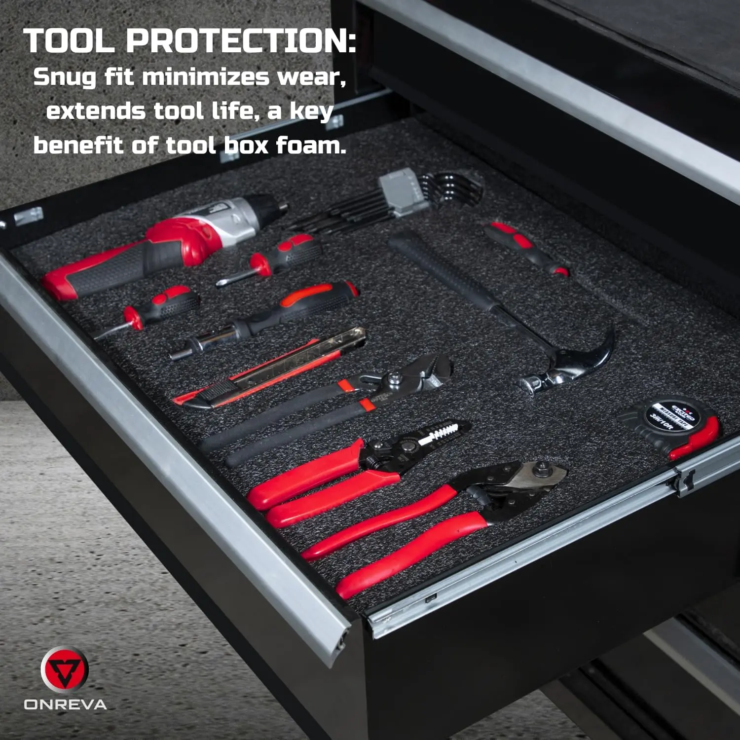• 【VERSATILE APPLICATIONS】 Foam sheets for tool drawers can be used in various storage solutions, such as toolboxes, cabinets, cases, or rolling tool chests. They’re also perfect for a range of other purposes like DIY projects, crafts, packaging, shipping, decorations, and model-building. This foam is compatible with toolboxes from brands like Craftsman, Snap-on, Husky, Milwaukee, DeWalt, US General, and many more. The tool foam adapts to any need.
